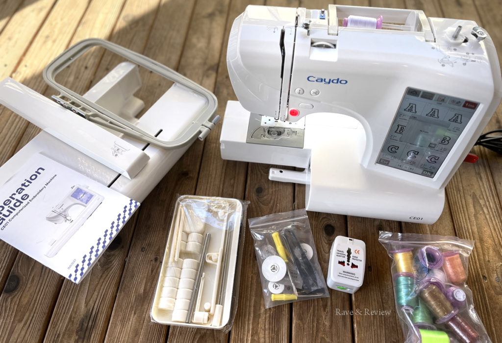 The Caydo CE01 smart embroidery machine is a computerized wizard that makes learning how to embroider easy, even for absolute beginners like me. It has a large 7” full-color HD touchscreen that makes designing, and then creating, your project as simple as possible. Whereas other models have a small screen that is harder to navigate, the Caydo’s larger screen makes it so much easier to preview designs, adjust settings, and operate the machine easily.