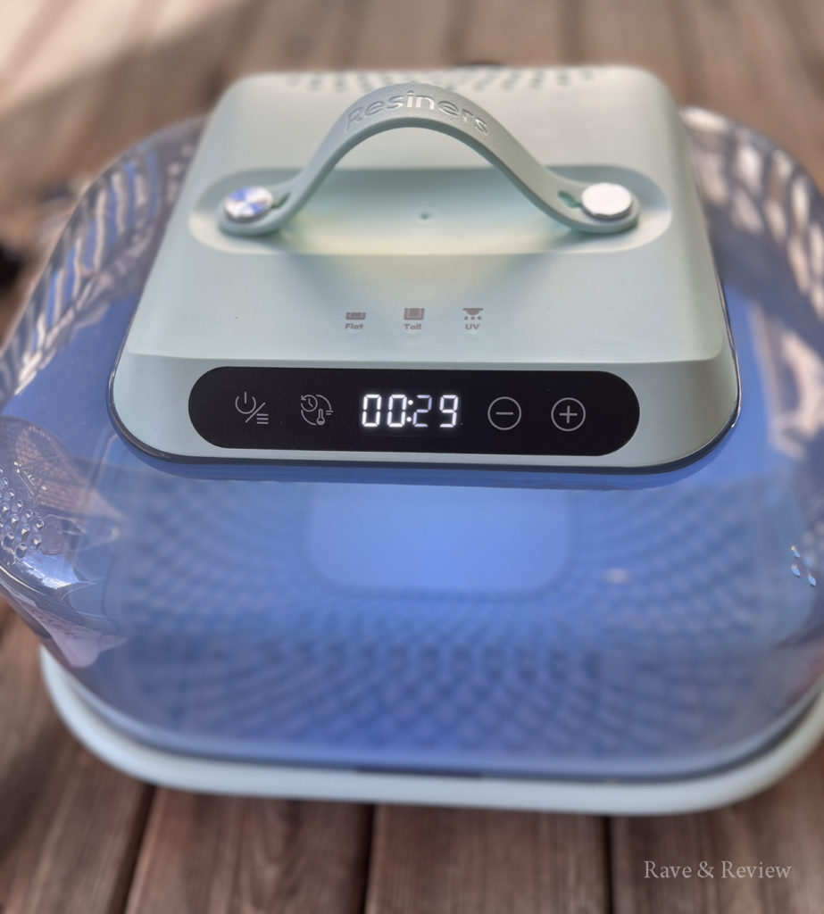 It also has multiple modes and settings for enhanced curing efficiency and has one-touch temperature controls and timers for whatever medium you’re using. It also has upgraded 3D thermal circulation to give you uniform, bubble–free curing. With its built-in silicone mat, it makes resin crafts as mess-free as possible, because any that happens to get on the mat will simply cure with the completed project and then it’s easily picked off and thrown away.