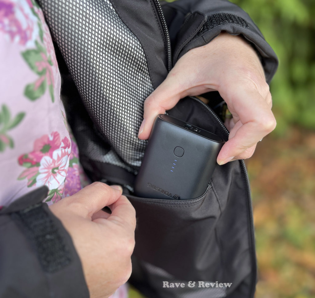 It works by using 5 carbon fiber heating elements in targeted zones that work with the included 5K battery to give you Venustas-Warm™ Heating Technology, all while preventing overheating. 3 adjustable heating settings for any length event {high 3hrs, medium 6hrs, and low 10hrs} and of course you can wear the coat without the heat pack installed if it’s a warm fall or spring day. You can even charge your phone or device with the included battery pack while keeping warm, which is my favorite feature because you know mom will need all the battery power for all those amazing pictures she’ll be taking!
