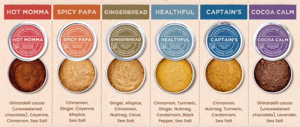 Here are the standard flavors available, with seasonal flavors that launch depending on the time of year. You can shop all of Vashon Coffee Dust on their website. Be sure to follow them on Facebook and Instagram.